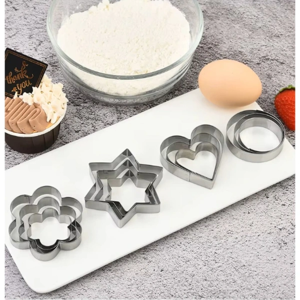 12 ADET PASLANMAZ ÇELİK KURABİYE KALIBI SETİÜrün Özellikleri12 adet paslanmaz çelik kurabiye kalıbı seti, dayanıklı ve hijyenik yapısıyla mutfakta pratik kullanım sağlar. Kalpler, yıldızlar, çiçekler ve daireler gibi 4 farklı şekli bulunan bu set, her şeklin üç farklı boyutuyla toplam 12 parçadan oluşur. Yalnızca kurabiye hamuru için değil, aynı zamanda sebze, meyve, yumurta veya hamur işi sunumlarında da yaratıcı biçimlendirmeler yapmanıza imkân tanır. Paslanmaz çelik yapısı sayesinde uzun ömürlü kullanım sunar ve kolay temizlenir. Pürüzsüz kenarları sayesinde güvenli bir kullanım deneyimi sağlar. Evde, kafelerde veya pastanelerde dekoratif sunumlar yapmak isteyenler için ideal bir yardımcıdır.Paket İçeriği1 adet 12’li paslanmaz çelik kurabiye kalıbı seti