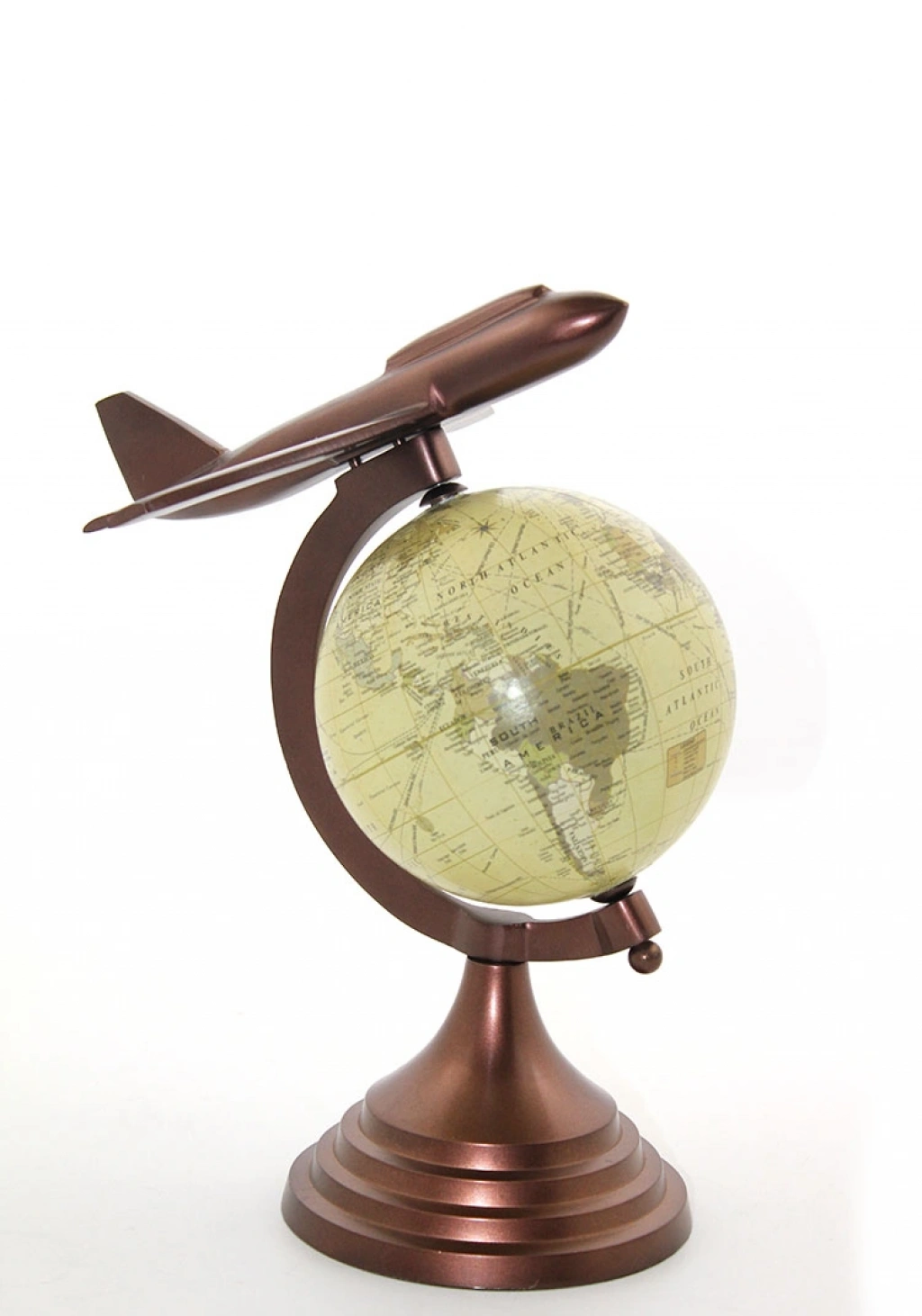 25x15 CM PİRİNÇ UÇAK TASARIMLI DÜNYA KÜREÜrün ÖzellikleriPirinç Uçak Tasarımlı Dünya Küre, seyahat tutkusunu ve keşif ruhunu yaşam alanlarınıza taşıyan, son derece estetik ve prestijli bir dekorasyon objesidir. 25x15 cm boyutlarındaki bu özel tasarım, klasik bir dünya küresini üzerinden geçen zarif bir uçak figürüyle birleştirerek masanıza dinamik bir hava katar. Pirinç görünümlü kaliteli malzeme kullanılarak üretilen stand ve uçak bölümü, antik gold tonlarıyla bulunduğu ortama nostaljik bir şıklık sunar. Kürenin üzerindeki detaylı harita grafikleri, coğrafi keşiflerin büyüsünü yansıtırken yüksek kaliteli işçiliği ürünün premium karakterini ön plana çıkarır. Bu dekoratif dünya küresi, dayanıklı metal ayak yapısı sayesinde kütüphane, çalışma masası veya vitrinlerde güvenle sergilenebilir. Hem havacılık meraklıları hem de gezgin ruhlu sevdikleriniz için unutulmaz bir hediyelik eşya seçeneği olan bu ürün, modern dekorasyon çizgileriyle klasik temaları kusursuz bir uyumla buluşturur. Bulunduğu her ortamda ilgi çekici bir odak noktası oluşturan bu uçaklı küre biblosu, kaliteden ödün vermeyenler için tasarlanmıştır.Ürün Teknik ÖzellikleriÖzellikAçıklamaÜrün AdıPirinç Uçak Tasarımlı Dünya KüreBoyut25x15 cmMalzemePirinç Görünümlü Metal ve Kaliteli Plastik KüreTasarımUçak Figürlü – Antik StandlıRenkPirinç / Antik Gold ve Harita RenkleriStilVintage / Klasik / Gezgin TemalıKullanım AlanıOfis, Çalışma Odası, Kütüphane, Ev DekorasyonuPaket İçeriği1 Adet Pirinç Uçak Tasarımlı Dünya Küre (25x15 cm)