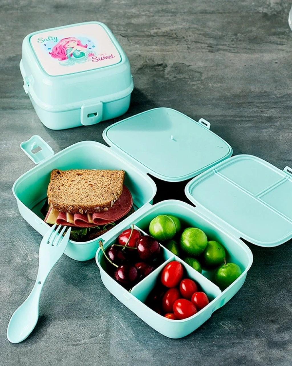 1 Adet 4 Bölmeli Çatal Bıçaklı Beslenme Kabı - Diyet Kabı