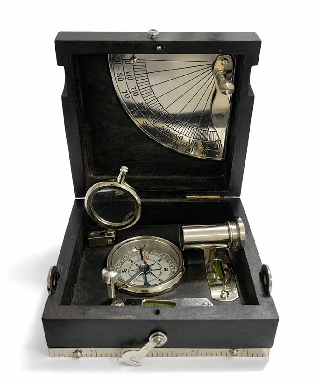 AHŞAP KUTULU İŞLEMELİ PİRİNÇ PUSULA SETİ Ürün ÖzellikleriZamanın ötesinden gelen bir keşif ruhunu masanıza taşıyın! Ahşap Kutulu İşlemeli Pirinç Pusula Seti, antika denizcilik ekipmanlarının zarafetini ve işlevselliğini bir araya getiren prestijli bir koleksiyon parçasıdır. 12x6 cm boyutlarındaki özel tasarım siyah ahşap kutusu içerisinde sunulan bu set; yüksek kaliteli, ince işçilikli parlak pirinç pusula ve ona eşlik eden nostaljik aksesuarlardan oluşur. Pusulanın hassas iğnesi ve rüzgar gülü detaylı kadranı, sadece bir dekoratif obje değil, aynı zamanda aktif olarak yön tayin edebileceğiniz fonksiyonel bir araçtır. Kutunun kapağındaki metal işlemeler ve iç kısmındaki koruyucu bölmeler, sete tam bir "kaptan köşkü" havası katar. Ofis dekorasyonunda fark yaratmak isteyen profesyoneller, coğrafya meraklıları ve deniz tutkunları için benzersiz bir lüks hediye seçeneğidir. Hem kütüphanenizin en şık parçası olacak hem de sevdiklerinize unutulmaz bir hatıra bırakmanızı sağlayacak bu pusula seti, masif yapısıyla uzun yıllar değerini koruyacaktır.Ürün Teknik ÖzellikleriÖzellikAçıklamaKutu MalzemesiSiyah Boyalı Masif Ahşap ve Metal İşlemelerPusula MalzemesiBirinci Sınıf Parlak PirinçKutu Boyutları12 cm x 12 cm x 6 cmSet İçeriğiİşlemeli Pirinç Pusula ve Ahşap Muhafaza KutusuFonksiyonAktif Çalışan Hassas Pusula SistemiStilAntika, Marin (Nautical), Klasik Keşif TemalıKullanım AlanıYönetici Hediyesi, Masaüstü Dekor, KoleksiyonPaket İçeriği1 Adet Ahşap Kutulu İşlemeli Pirinç Pusula Seti