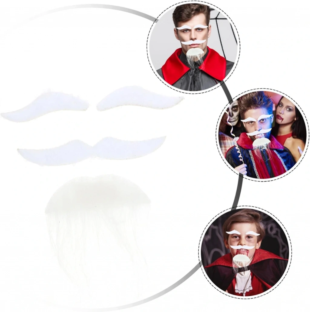 Beyaz Renk Kendinden Yapışkanlı Takma Sakal Bıyık ve Kaş Seti