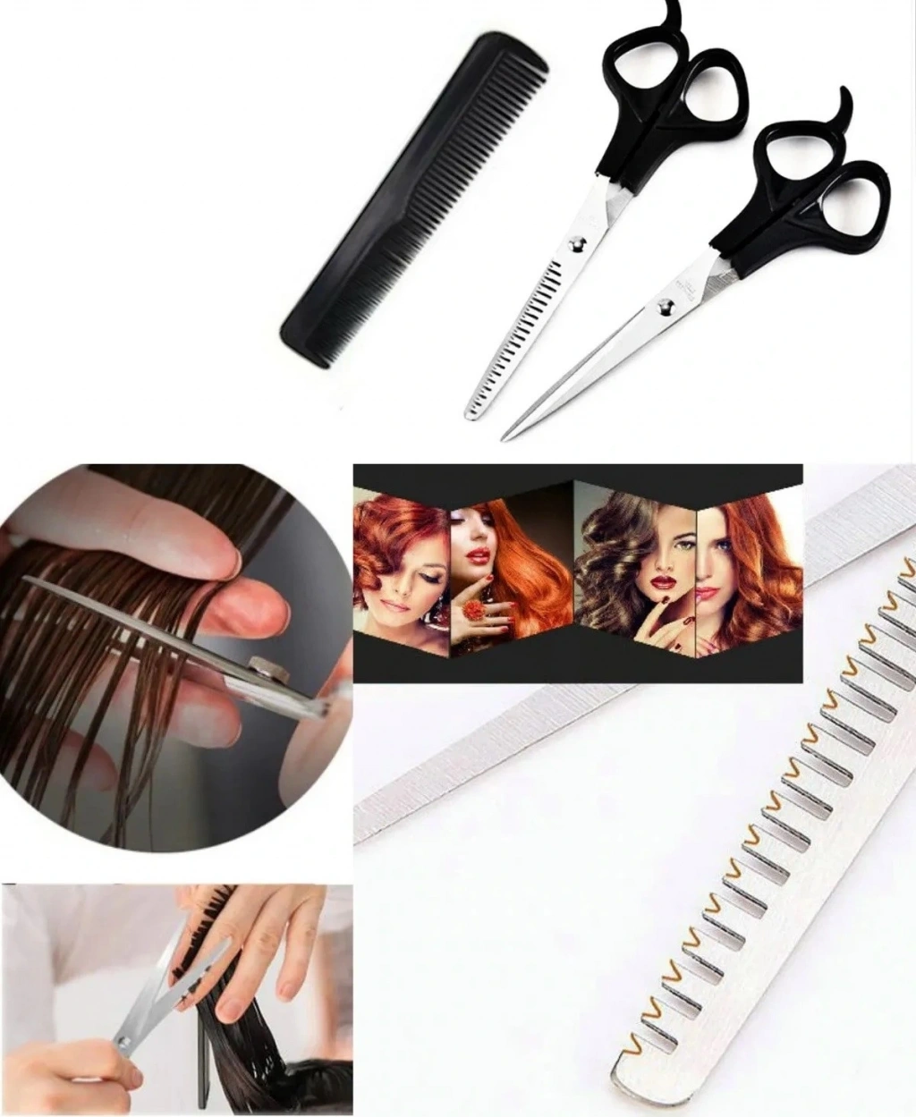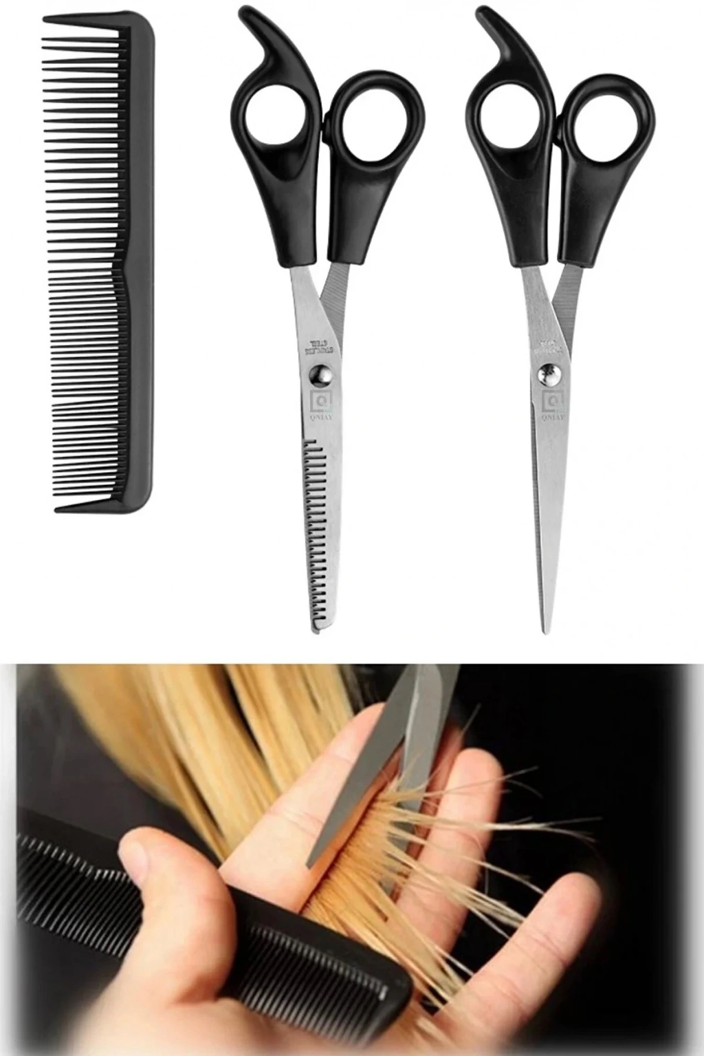 Çelik - Berber - Kuaför Traş Seti - Kuaför Makası - Ara Makas - Tarak