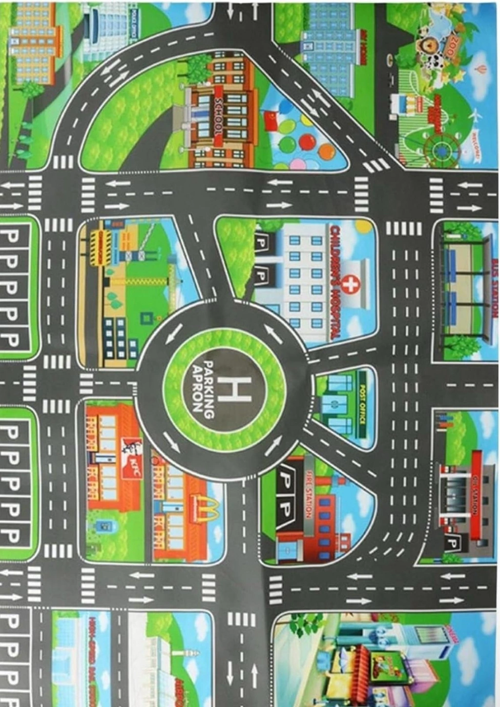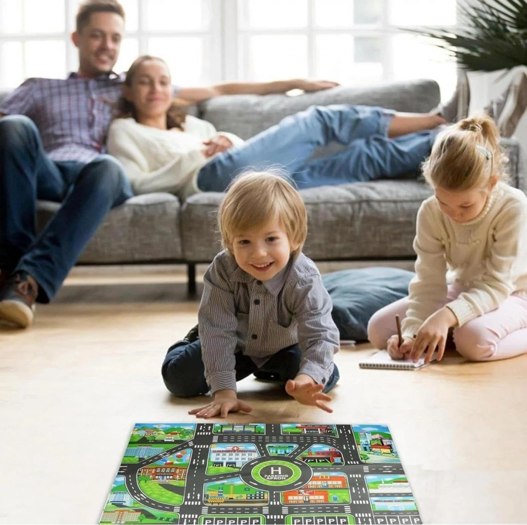 Yolda Oyun Süresi: Araba Halımızda renkli bir şehir manzarasını keşfedin ve canlı yollar ve binalarla yol maceralarını daha ilginç hale getirin. Çocuğunuzun hayal gücünü harekete geçirin ve daha fazla eğlenceyi teşvik eden canlı bir oyun alanı yaratın.
