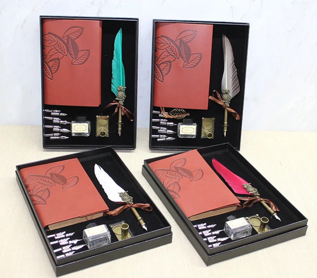 DERİ DEFTERLİ DİVİT HOKKA SETİ MODEL 1Ürün ÖzellikleriDeri Defterli Divit Hokka Seti Model 1, nostaljik yazı deneyimini modern bir sunumla bir araya getiren şık ve özel bir yazı setidir. 29x21 cm kutu boyutuna sahip bu set, deri kapaklı defter, divit kalem, farklı uç seçenekleri ve hokka mürekkebiyle zengin bir kullanım alanı sunar. Deri defter kişisel notlar, özel yazılar, günlük tutma ve kaligrafi çalışmaları için ideal bir yüzey sağlarken divit kalem nostaljik ve estetik bir yazım hissi yaratır. Hokka mürekkebi ile birlikte sunulan farklı uçlar hem ince hem kalın hatlarda yazı yazma imkânı verir. Hem koleksiyon değeri taşıyan hem de özel bir hediye niteliği sunan bu set, yazı sanatına ilgi duyanlar için ideal bir tercihtir. Renk seçimi yapılamaz; görseldeki seçeneklerden biri karışık olarak gönderilir.Paket İçeriği1 adet Deri Defterli Divit Hokka Seti Model 1