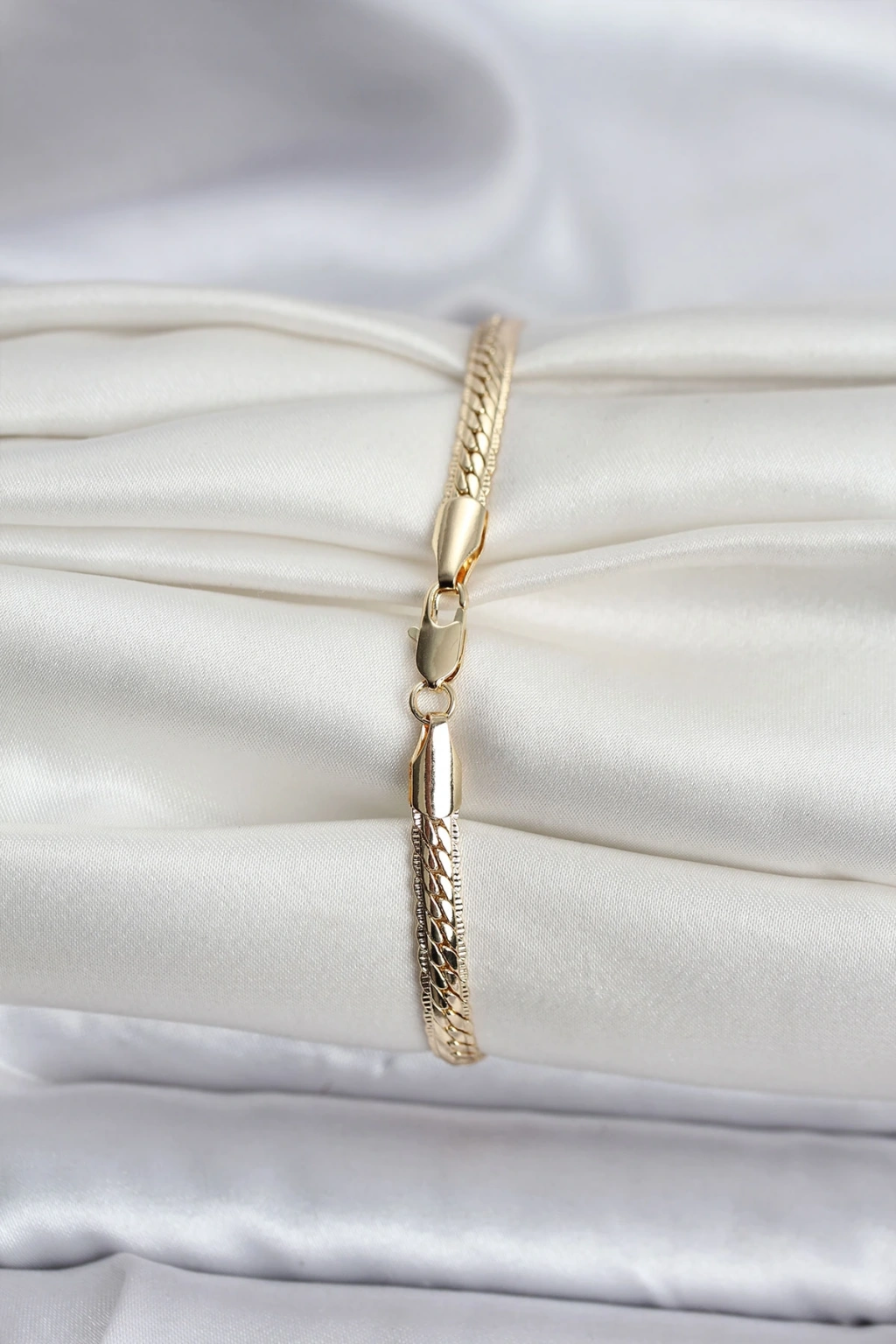 HEYF 14K Gold Renk Kaplama Lazer Ezme Zincir Model CM Kadın Bileklik