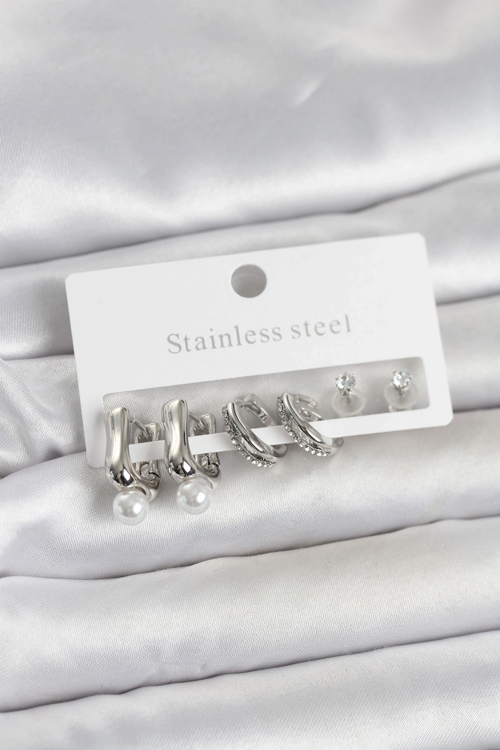 HEYF 316L Çelik Gümüş Renk Kadın Küpe Seti