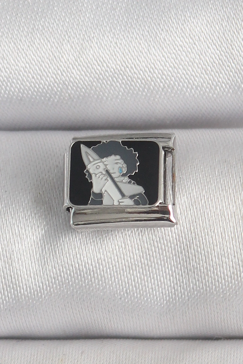 HEYF 316L Çelik Gümüş Renk Siyah İşlemeli Portre Model Nomination Charm