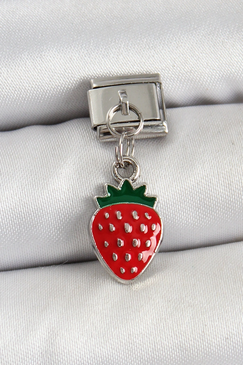 HEYF 316L Çelik Sallantılı Çilek Model Gümüş Renk Nomination Charm