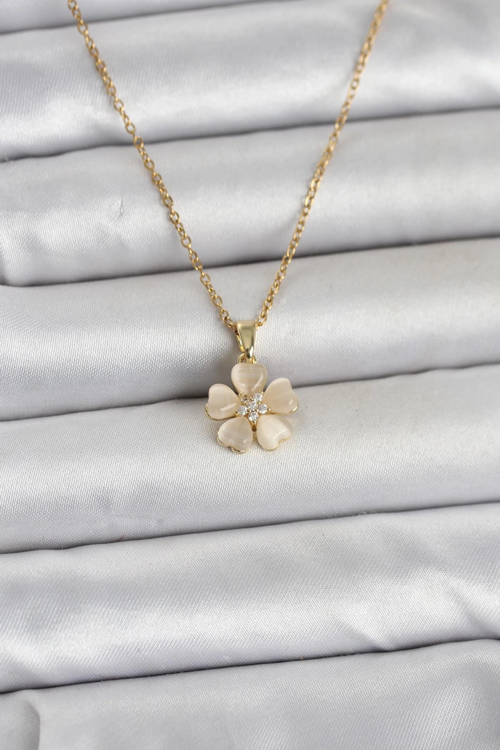 HEYF 316L Çelik Zincir Gold Renk Yonca Model Kadın Kolye