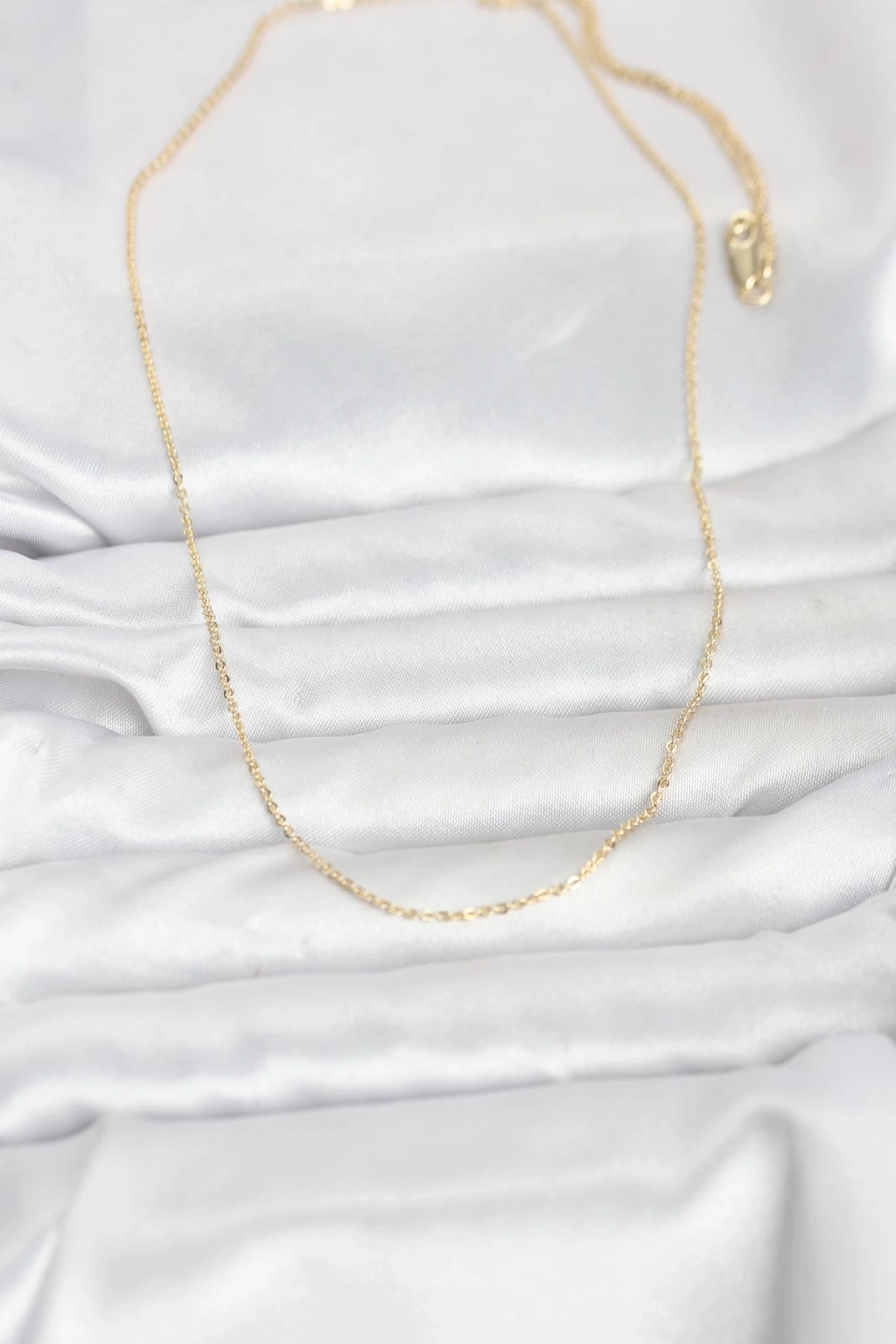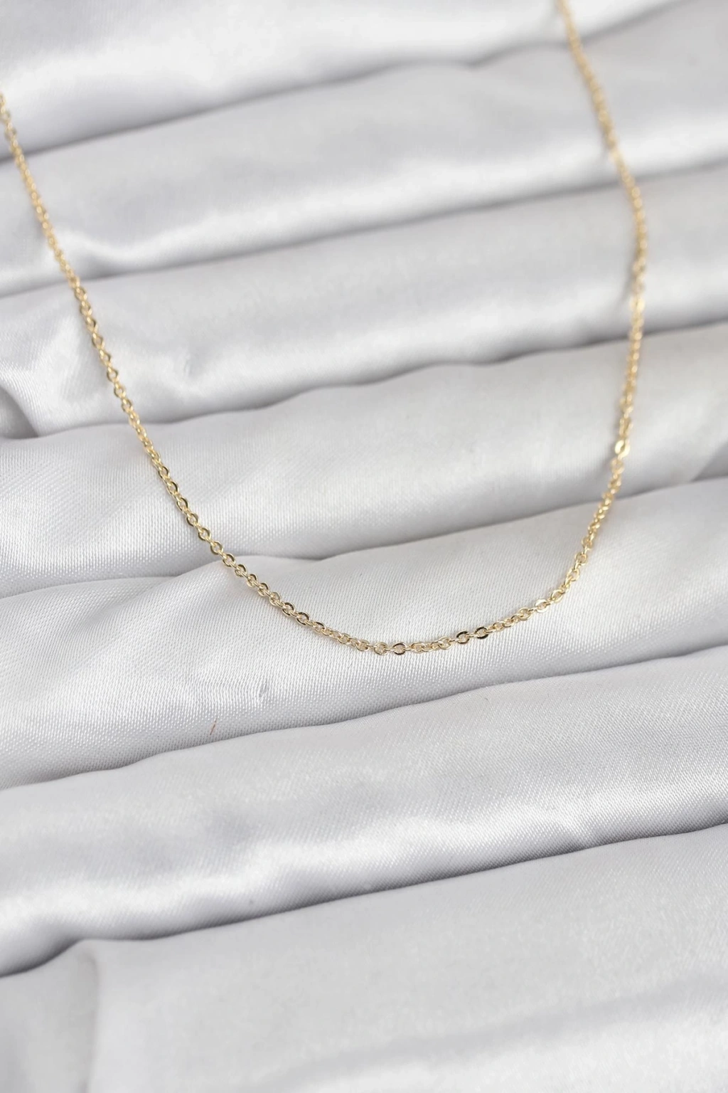 HEYF CM 14K Gold Renk Yassı Zincir Model 45 cm Kadın Kolye