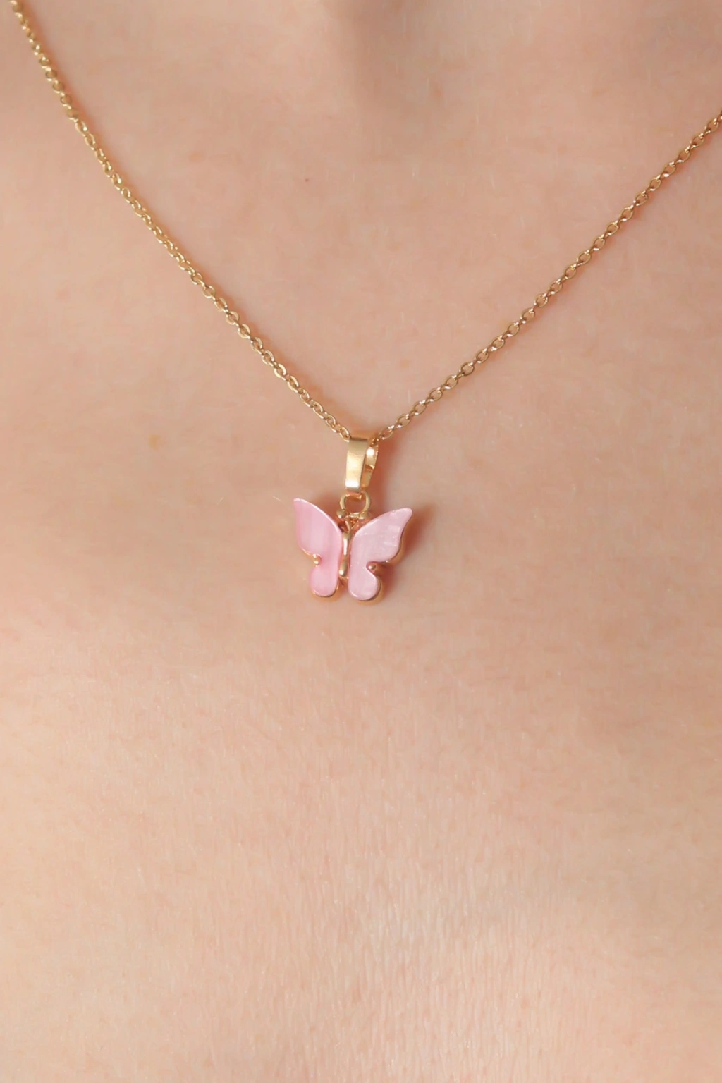HEYF Gold Pembe Renk Kelebek Figür Kadın Kolye