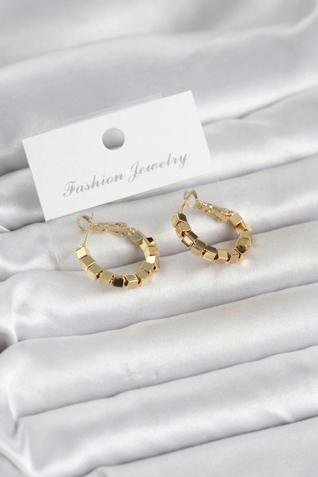 HEYF Gold Renk Kare Halka Model Kadın Küpe