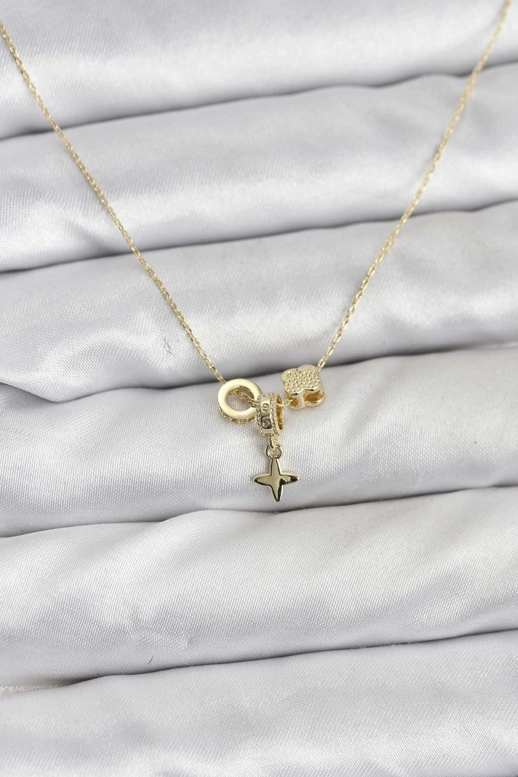 HEYF Gold Renk Pirinç Minimal Charmlı Kadın Kolye
