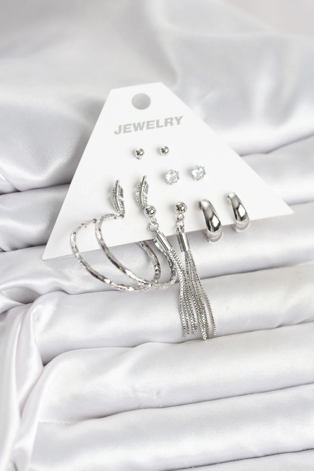 HEYF Gümüş Renk Pirinç 6 Çiftli Kadın Küpe Seti