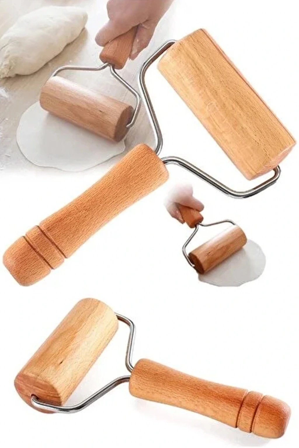 Ahşap Saplı Rulo Hamur Açıcı Merdane Pürüzsüz Oklava Pizza Börek Açma Silindir