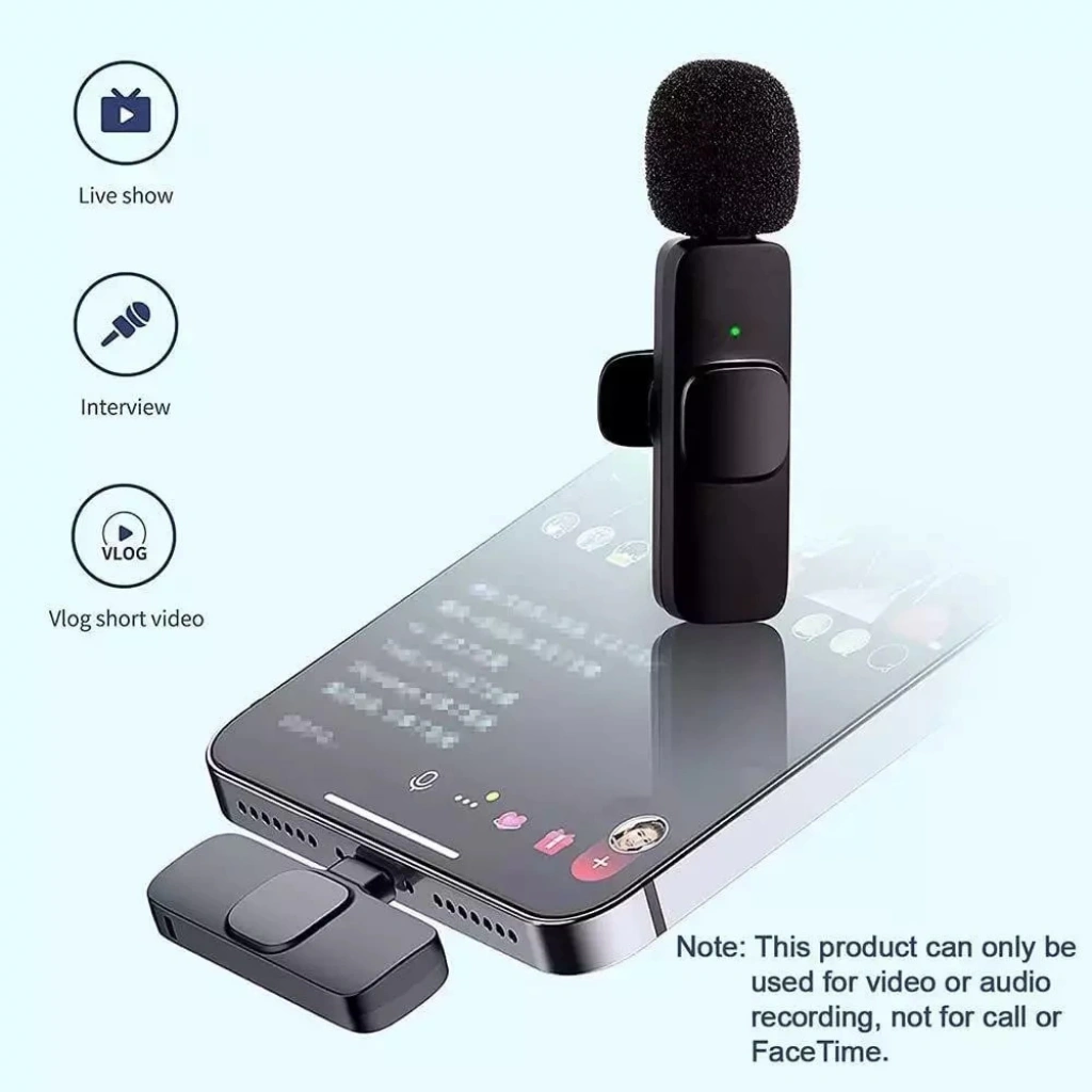 Ürün Adı: 2 Adet Kablosuz Yaka Mikrofonu Typ-c 2'li Mini Mikrofon Ürün Açıklaması: 2 Adet Kablosuz Yaka Mikrofonu Typ-c 2'li Mini Mikrofon bağlantısı sayesinde Android telefonlara ve tabletlere kolayca bağlanabilir. Lightning bağlantılı modele benzer şekilde, bu mikrofon da gürültü önleme özelliği, 360 derecelik ses alma özelliği, kompakt ve taşınabilir tasarımı ve uzun pil ömrü gibi özelliklere sahiptir. Ürün Özellikleri video çekmek Podcast kaydı yapmak Online ders vermek Toplantılarda ve sunumlarda kullanmak Müzik kaydı yapmak