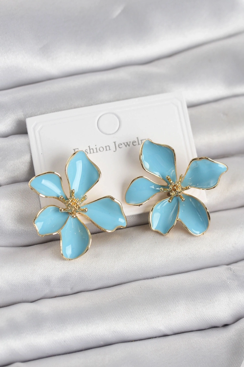 HEYF Mavi Mineli Çiçek Model Pirinç Kadın Küpe