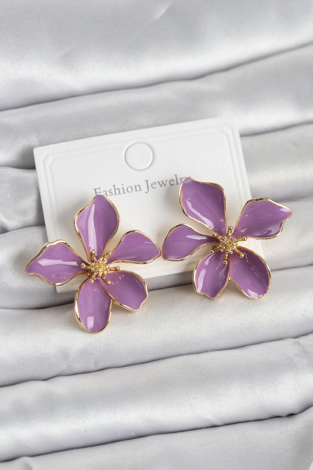 HEYF Mor Mineli Çiçek Model Pirinç Kadın Küpe
