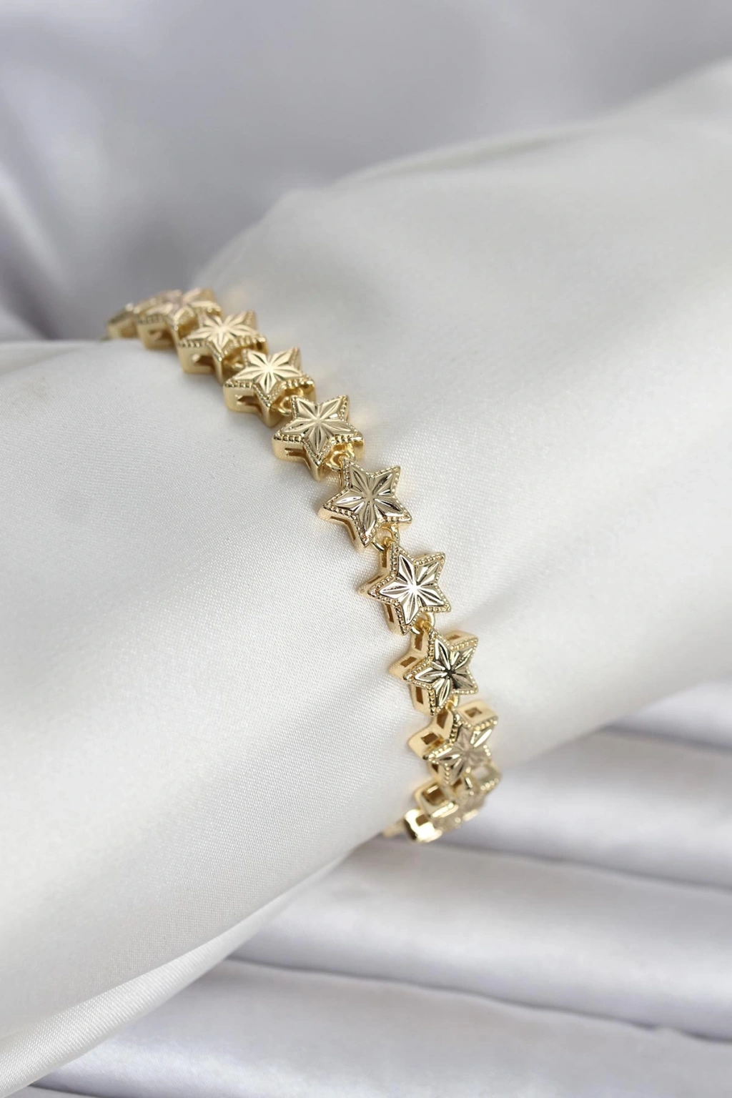HEYF Pirinç Gold Renk Yıldız Model Kadın Bileklik