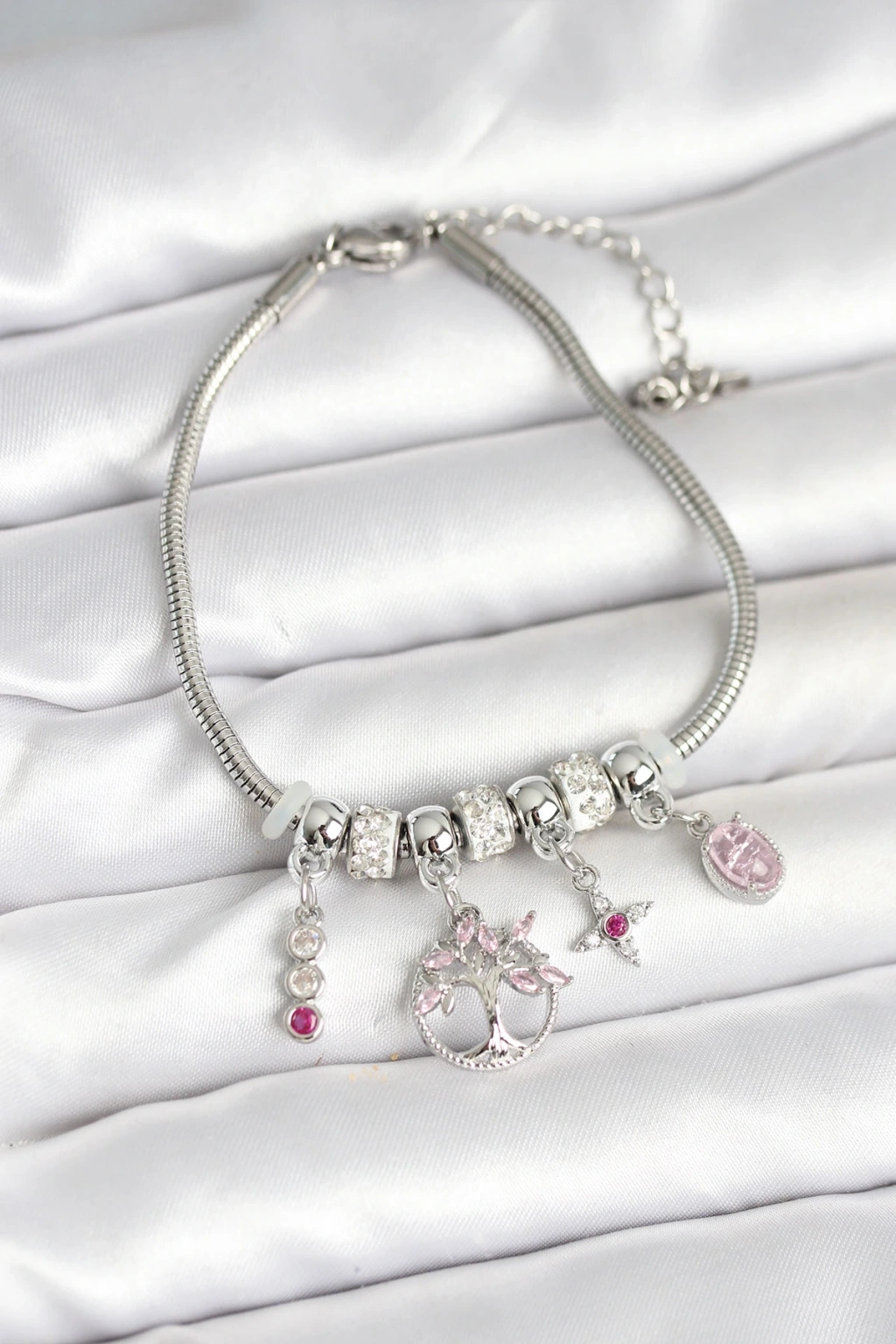 HEYF Pirinç Gümüş Renk Yaşam Ağacı Charmlı Kadın Bileklik