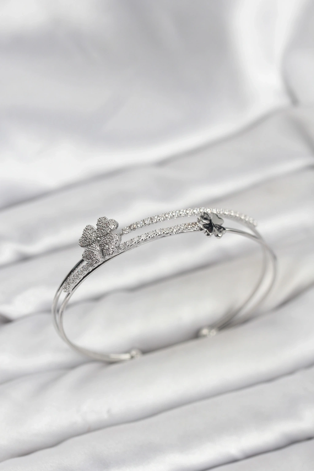 HEYF Pirinç Gümüş Renk Yonca Model Kadın Bileklik