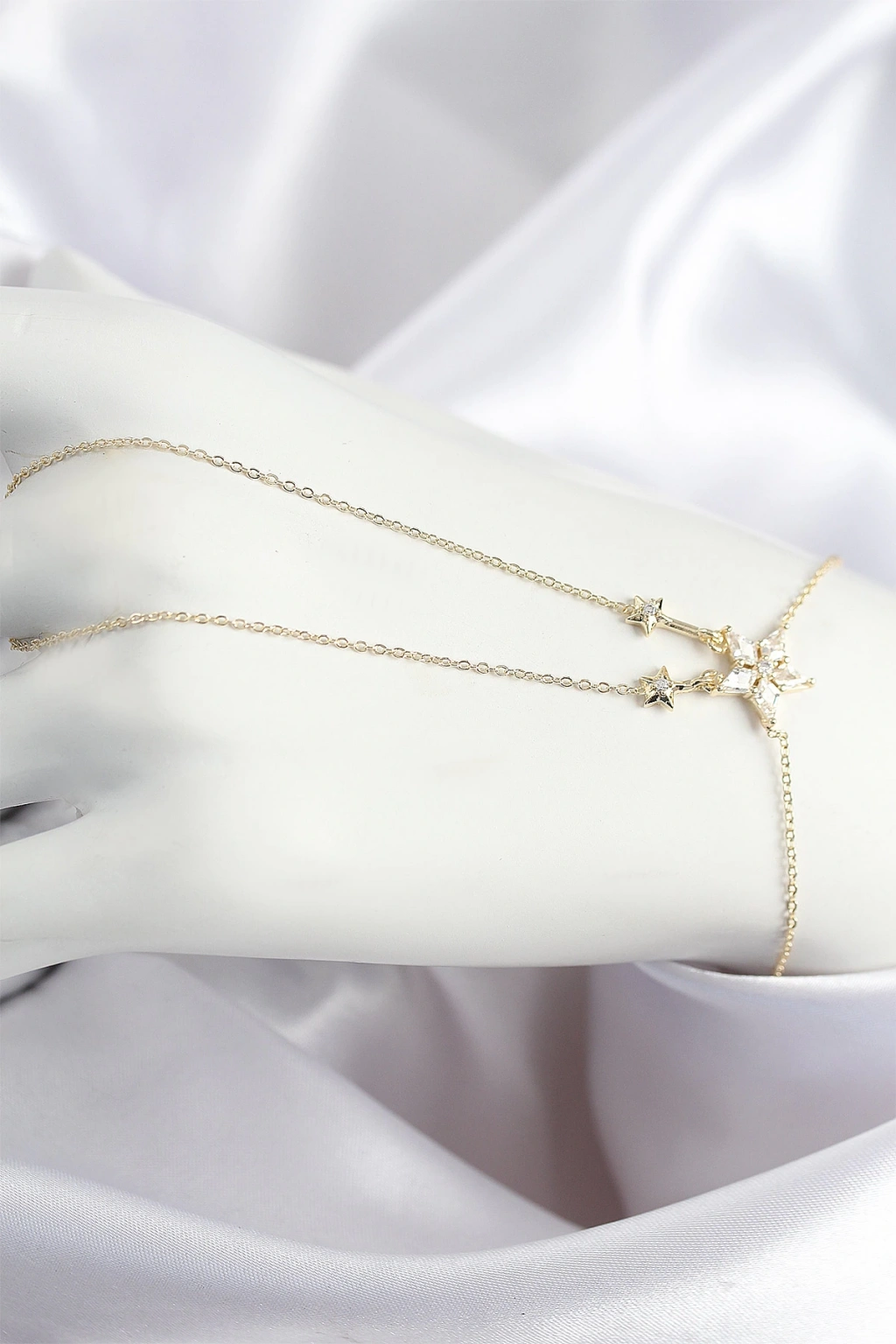 HEYF Pirinç Zirkon Taşlı Yıldız Model Gold Renk Şahmeran