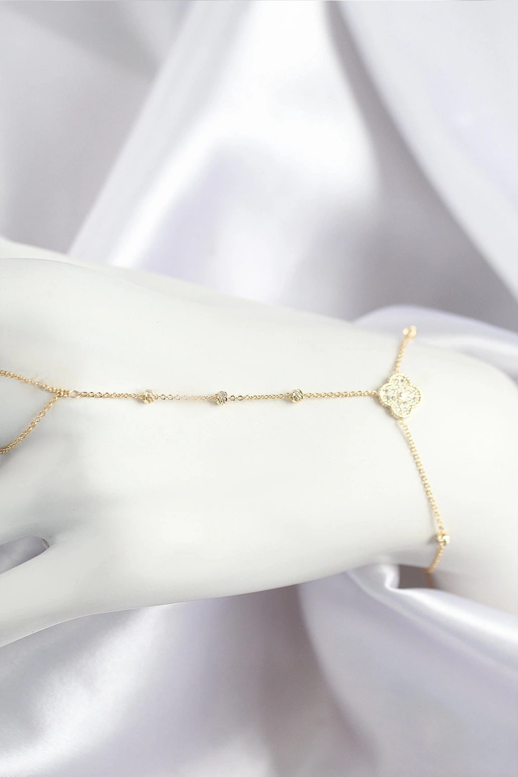 HEYF Pirinç Zirkon Taşlı Yonca Model Gold Renk Şahmeran