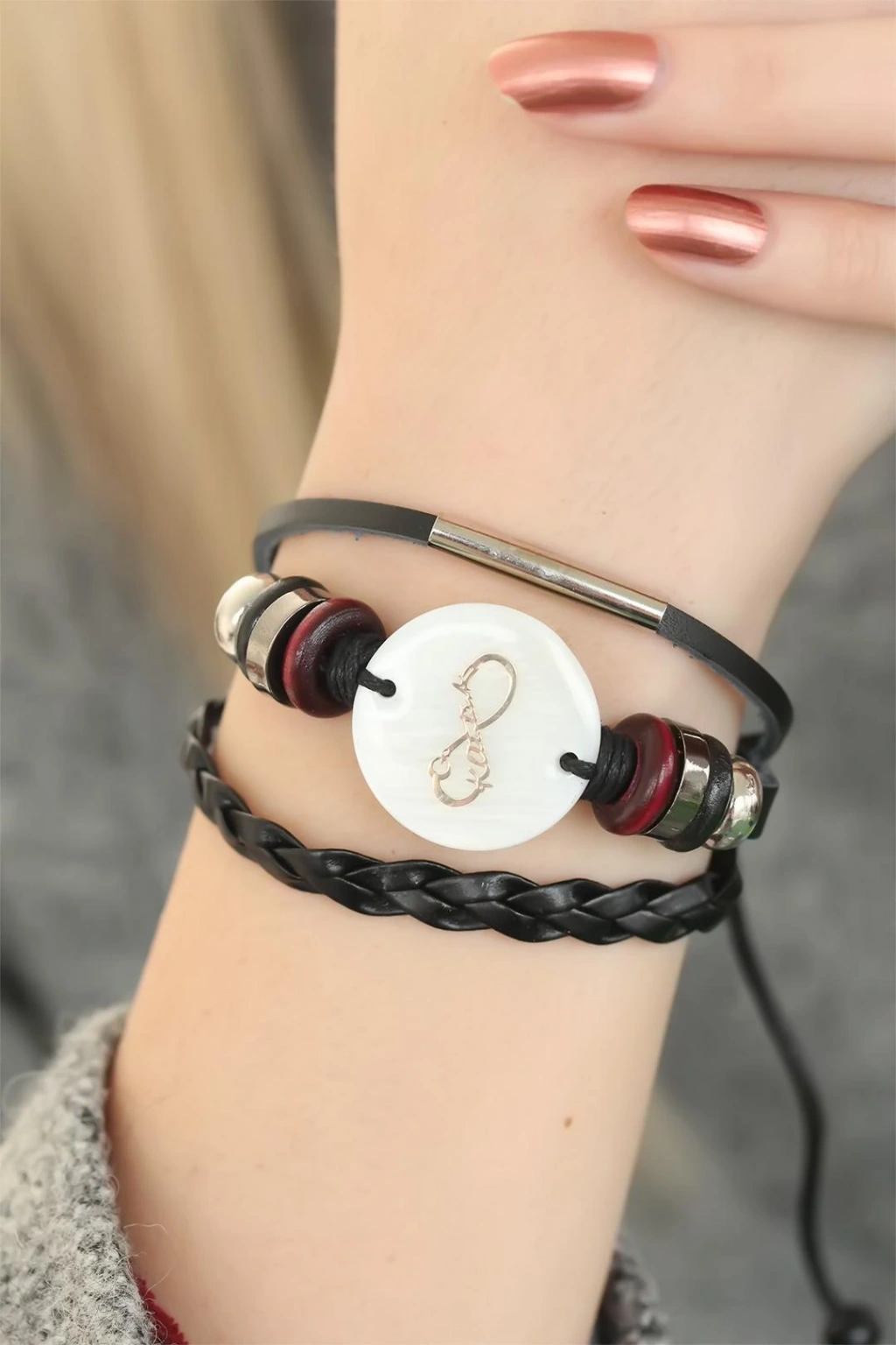 HEYF Siyah Renkli Sonsuzluk Tasarım Çoklu Deri Bayan Bileklik