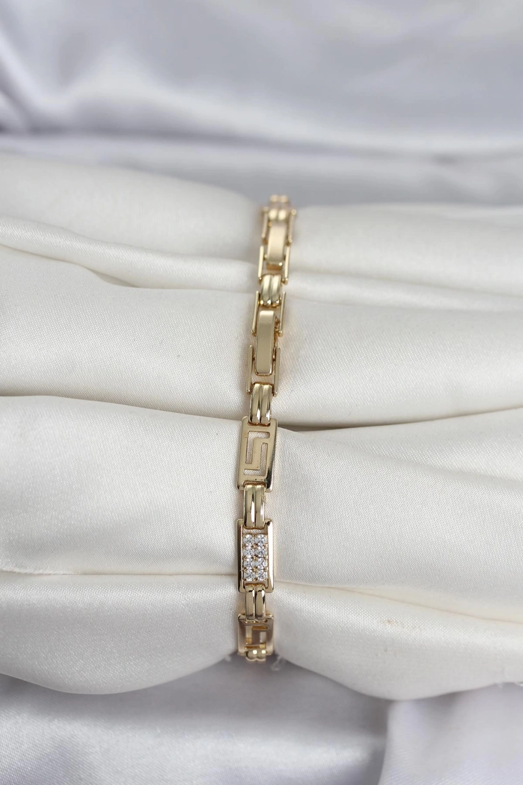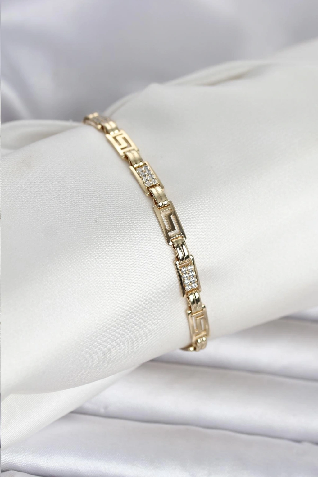 HEYF Pirinç Gold Renk Petek Model Zirkon Taşlı Kadın Bileklik