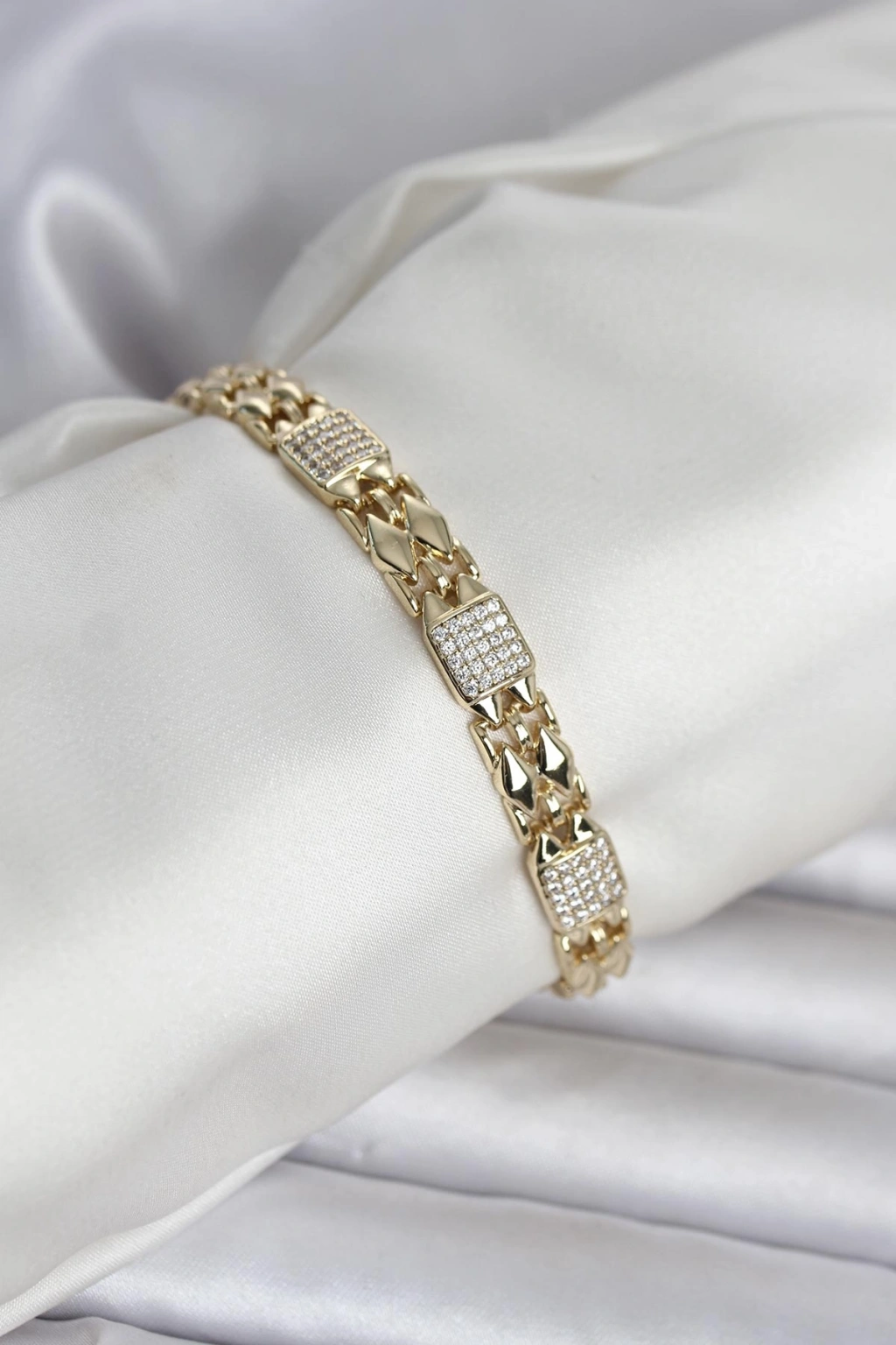HEYF Pirinç Gold Renk Zirkon Taşlı Çavuş Model Kadın Bileklik