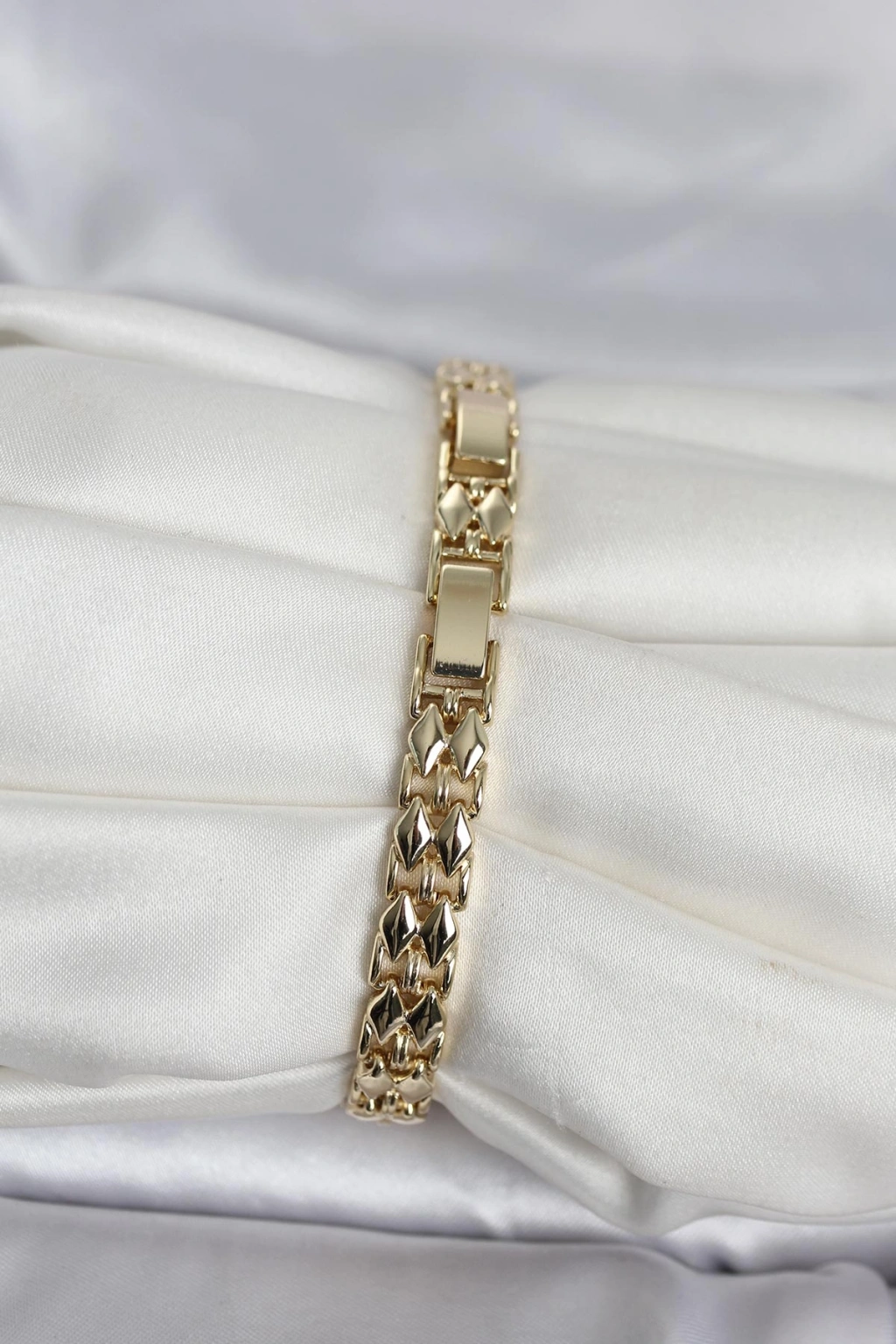 HEYF Pirinç Gold Renk Petek Model Zirkon Taşlı Kadın Bileklik