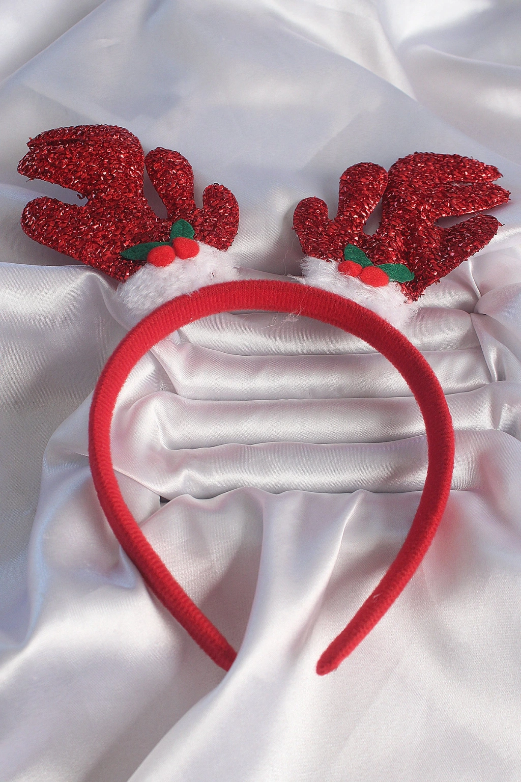 HEYF Yılbaşı Temalı Kar Tanesi İşleme Detay Geyik Boynuzu Figürlü Taç