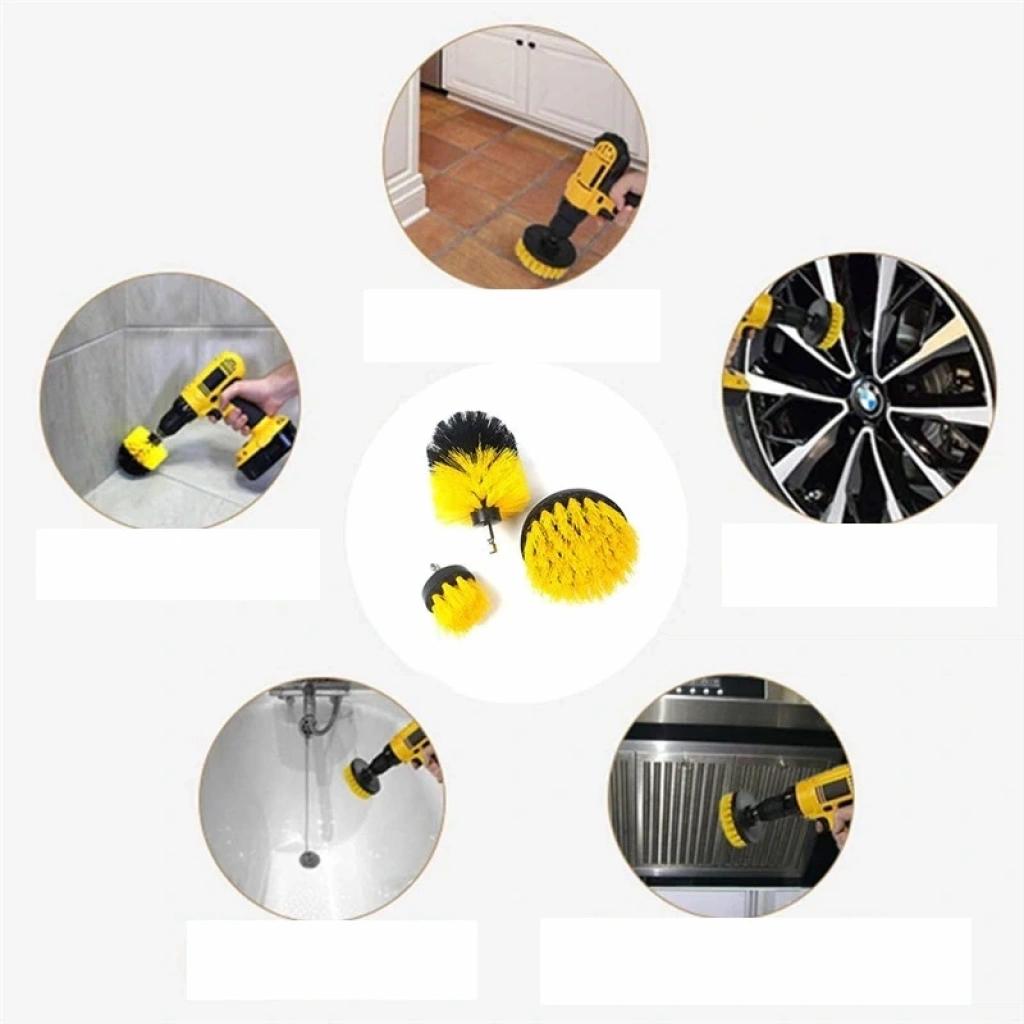 3lü Matkap Ucu Banyo Küvet Duşakabin Araba Tekerliği Koltuk Yıkama Temizleme Fırçası Seti