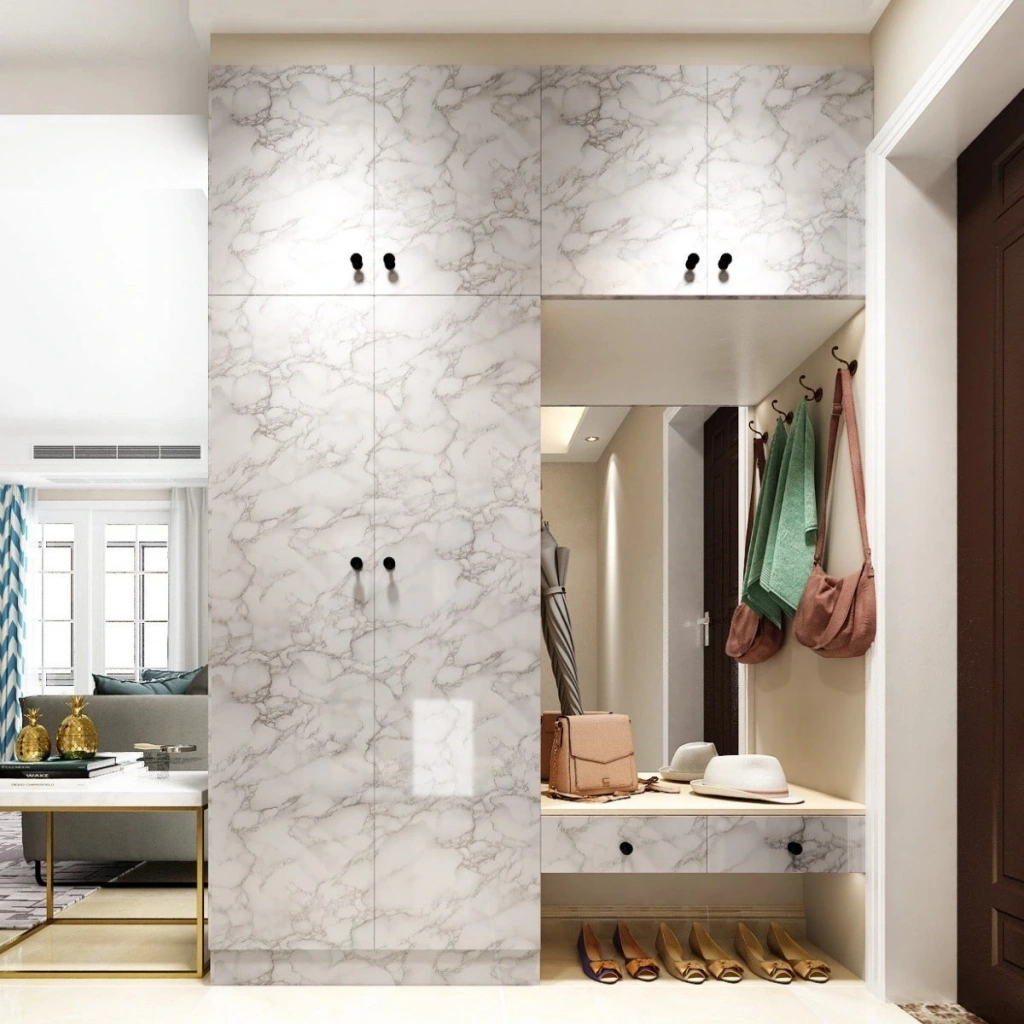 Mermer desenli kaplama duvar kağıdı yapışkanlı folyo ürünü su geçirmez ve ateş almaz özelliğe sahiptir.