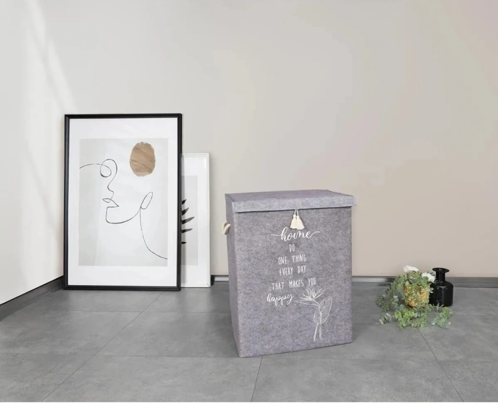 Katlanır keçe kulplu sepet evinizin her alanında, eşyalarınızı düzenleme ve saklama amacıyla kullanabileceğiniz bir organizerdir. Keçe yapısıyla şık ve dekoratif bir üründür