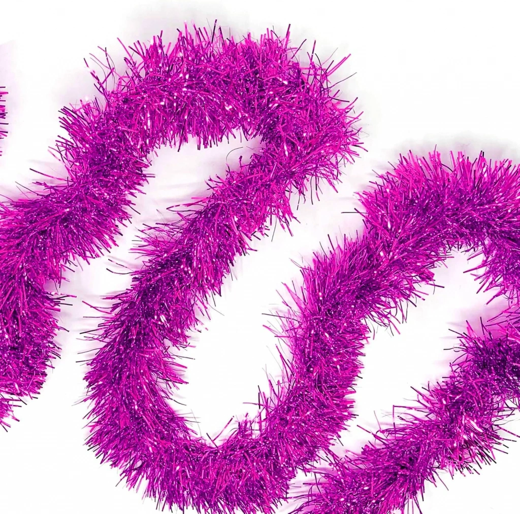 Harika bir parti süsü seçimi! Fuşya renkli, simli ve 2 metre uzunluğundaki bu şık süs, partinize hem modern hem de eğlenceli bir dokunuş katacak.