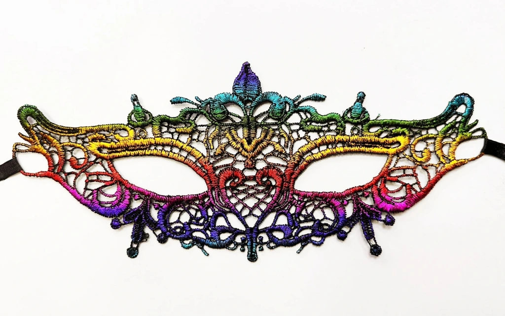 Rengarenk Dantel Kesim Dantel İşlemeli Balo Parti Maskesi, balo, parti veya özel bir gece için gizemli ve şık bir görünüm oluşturmak isteyenler için ideal bir üründür. Zarif dantel kesimi ve gökkuşağı rengi ile göz alıcı bir stil sunar.