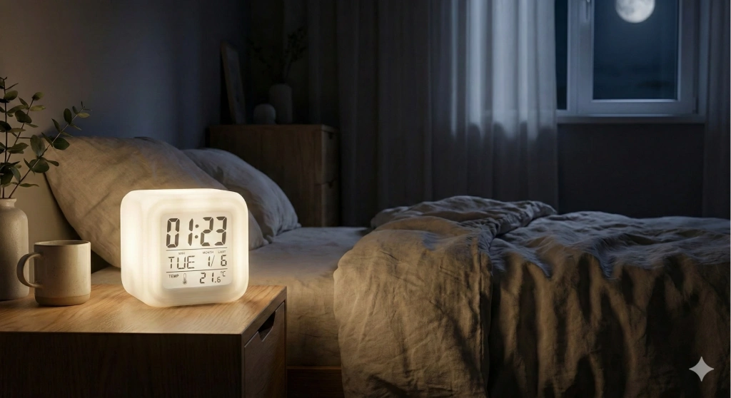 Gece saati görmek için dokunmanız yeterli.Tüm gövdesi ve ekranı ile birlikte renk değiştirmektedir. Işığını yakmadan da kullanabilirsiniz.