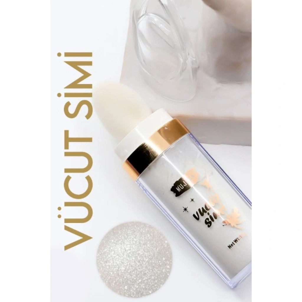 VÜCUT SİMİ BEYAZ RENKÜrün ÖzellikleriBeyaz renk vücut simi, cilt üzerinde ışıltılı ve dikkat çekici bir görünüm elde etmek isteyenler için tasarlanmıştır. Yoğun parlaklık sunan yapısı sayesinde ciltte belirgin bir ışıltı etkisi oluşturur ve özellikle kol, bacak, omuz ve dekolte bölgelerinde vurgulu bir görünüm sağlar. Beyaz ton, hem tek başına hem de farklı makyaj stilleriyle birlikte kullanıldığında daha aydınlık bir etki yaratır. Ürünün uç kısmında yer alan sünger fırça, simin cilde doğrudan ve kontrollü şekilde uygulanmasını kolaylaştırır. Bu yapı sayesinde ürün cilt yüzeyine dengeli dağılır ve uygulama sırasında pratiklik sağlar. Kolay kullanım sunan tasarımı, ürünü günlük ışıltı dokunuşlarından özel gün ve davet hazırlıklarına kadar farklı ihtiyaçlara uyumlu hale getirir. Yoğun pigment içeriği, tek uygulamada belirgin bir parlaklık elde edilmesine yardımcı olur.Ürün Teknik Özellikleri Özellik Açıklama Ürün Adı Vücut Simi Beyaz Renk Renk Beyaz Pigment Yapısı Yoğun pigment Parlaklık Etkisi Yoğun parlaklık Uygulama Ucu Sünger fırça Kullanım Kolay ve pratik uygulama Paket İçeriği1 adet beyaz renk vücut simi